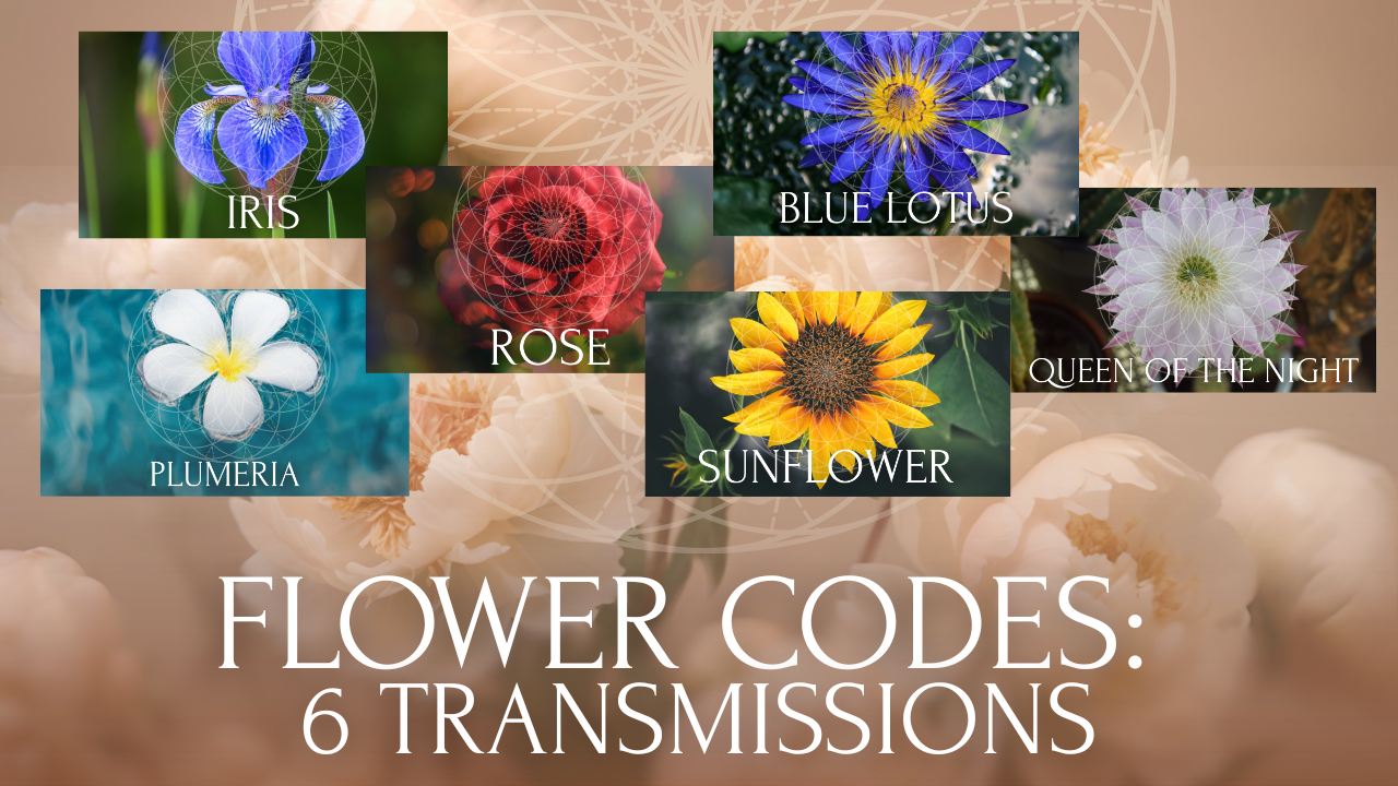 • 6 Flower Transmissions (3 hours total): Iris + Rose, Blue Lotus / Lily + Plumeria, Sunflower + Queen of the Night